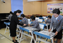 صنعت جامعة هان دوك سو للصناعة الخفيفة في بيونغ يانغ القماش السحري للكتابة عليه والرسم بالماء دون استخدام احبار .