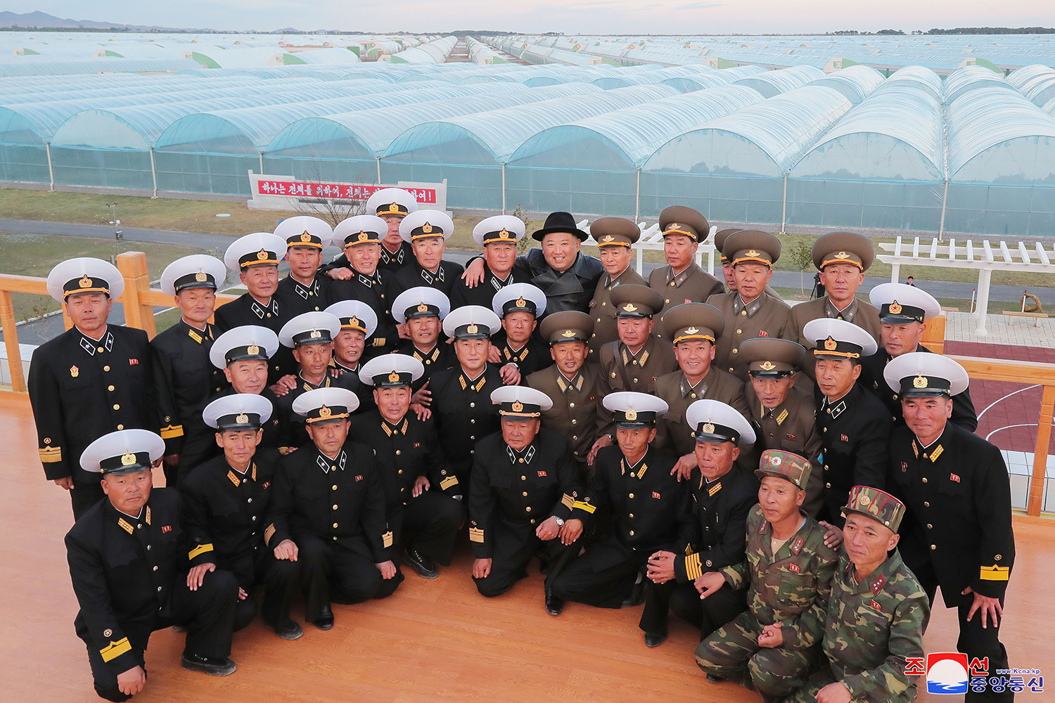 وجال القائد المحترم كيم جونغ وون مع الكوادر في الحزب والحكومة والجيش في أركان مزرعة ريونبو للصوابات.