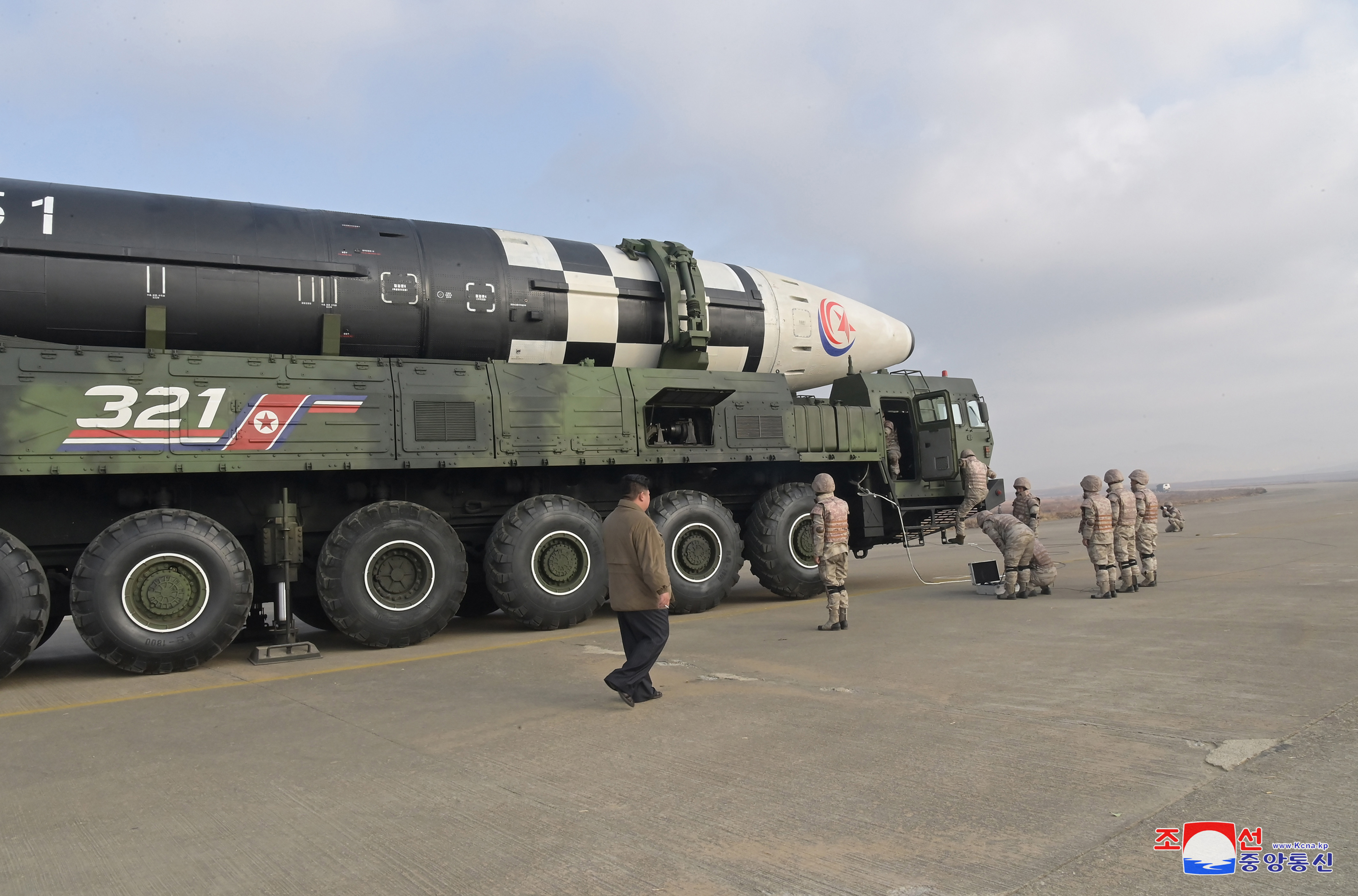 في يوم الثامن عشر من نوفمبر/تشرين الثاني، جري الإطلاق التجريبي للصاروخ البالستي العابر للقارات على نمط جديد للقوات المسلحة الإستراتيجية لجمهورية كوريا الديمقراطية الشعبية، وسط التنفيذ الكامل للإستراتيجية الأولية لبناء الدفاع الوطني، لحزب العمل الكوري وحكومة الجمهورية، القاضية برفع القوة الرادعة النووية المطلقة وفائقة الشدة دون توقف.