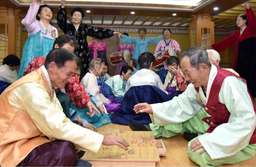 في كوريا الديمقراطية تقع دور رعاية المسنين في الأماكن الخلابة المناظر الطبيعية ببيونغ يانغ، عاصمة جمهورية كوريا الديمقراطية الشعبية وغيرها من كل أرجاء البلاد حيث يقضي المسنون البقية من حياتهم في فرح ومرح متمتعين بكل التسهيلات وسط اهتمام الدولة وعنايتها وعلى محياهم ابتسامة السرور والسعادة دائما.