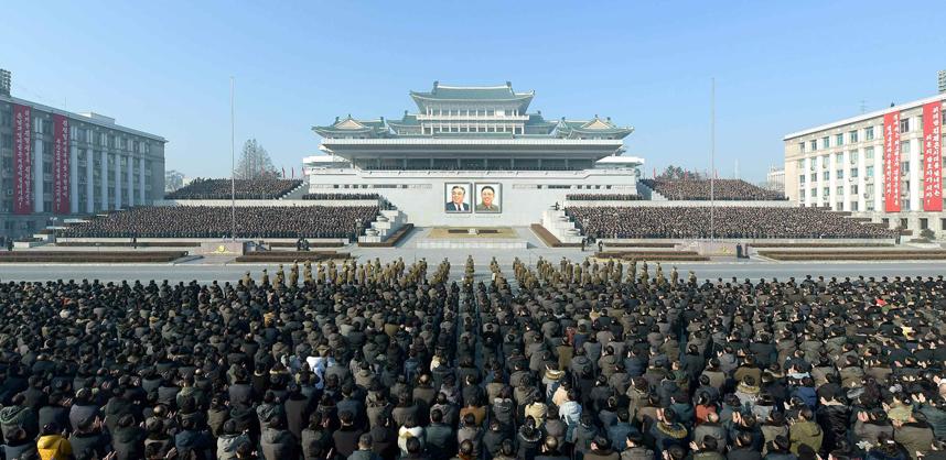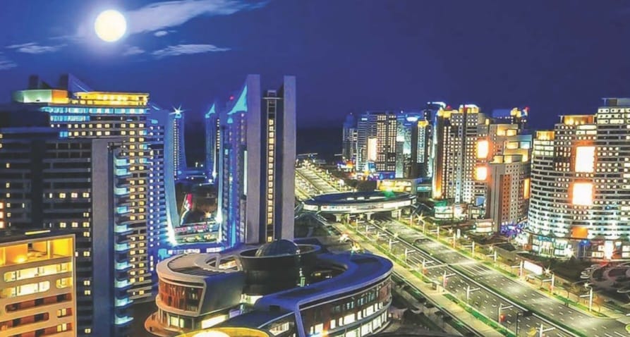 هذه الصورة تشير إلى المنظر الليلي في شارع سونغهوا الذي تم تدشينه في أبريل/ نيسان هذا العام ببناء مجموعة معمارية ضخمة متميزة من عشرة آلاف شقة سكنية في المدخل الشرقي من بيونغ يانغ، عاصمة جمهورية كوريا الديمقراطية الشعبية.