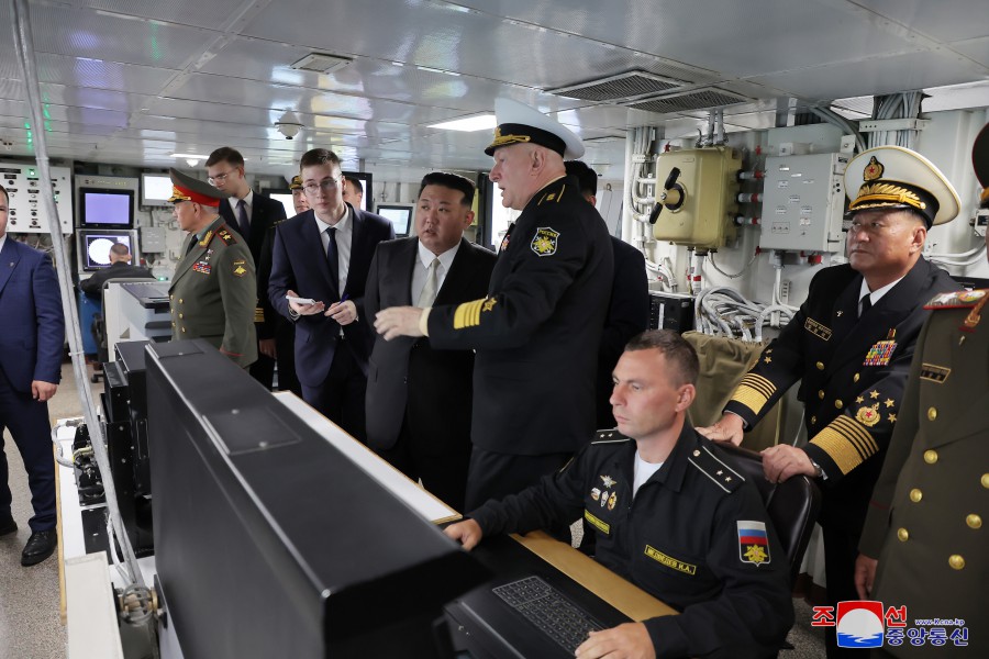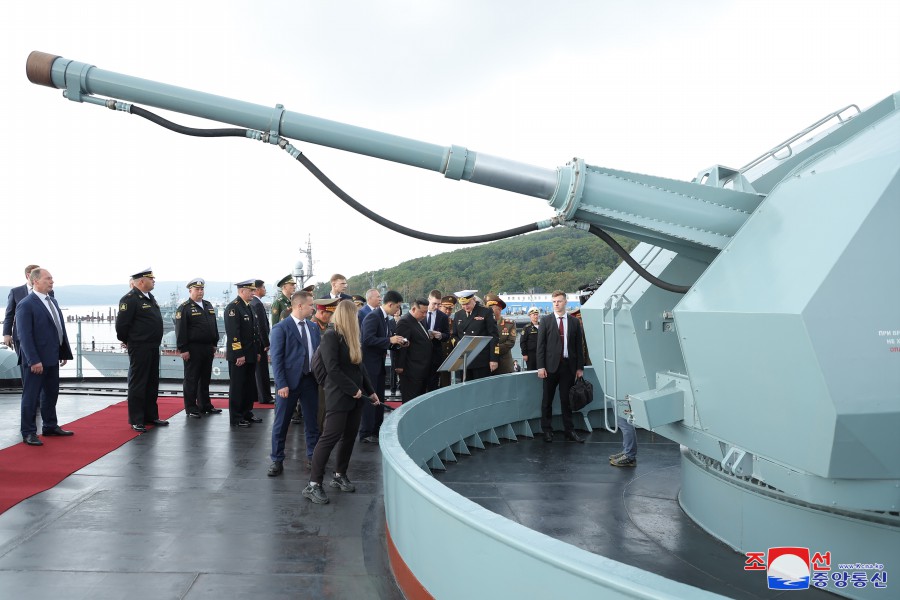بعد أن تبادل القائد كيم جونغ وون التحية مع قادة القوات البحرية الذين كانوا في استقباله واستقل الفرغاطة "مارشال شابوشنيكوف" وسط تحيات