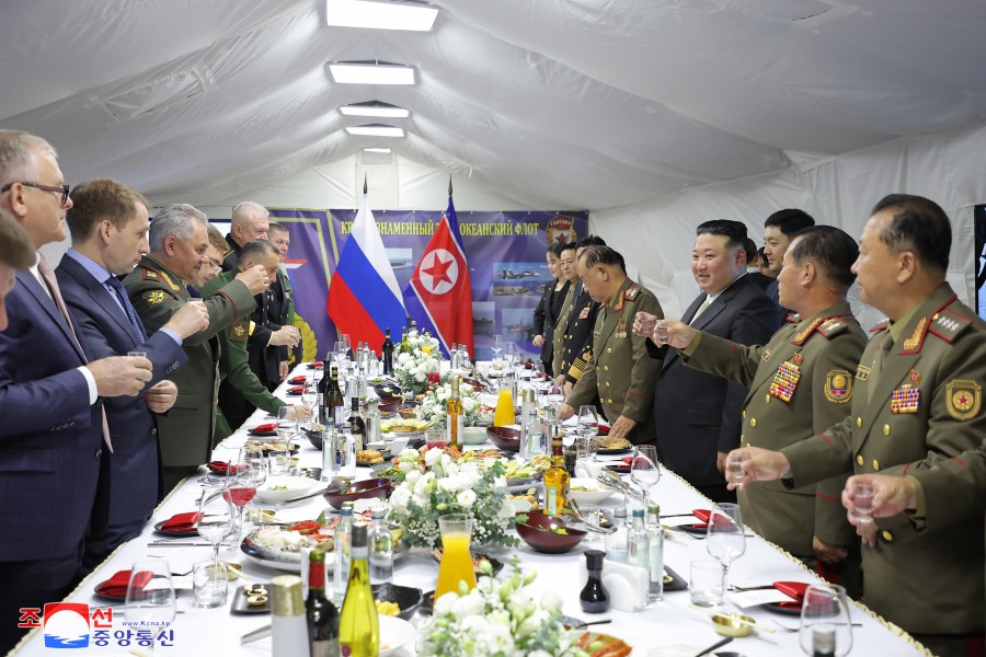 أقام سيرغي شويغو وزير الدفاع للاتحاد الروسي مأدبة الغداء ترحيبا بزيارة القائد كيم جونغ وون لأسطول المحيط الهادئ.